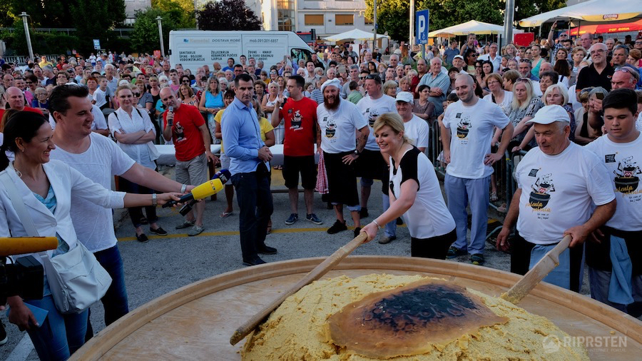 Samu manifestaciju posjetila je i hrvatska predsjednica Kolinda Grabar- Kitarović, koja je na kraju i zapjevala s kuharima te pomogla u podjeli porcija okupljenima.