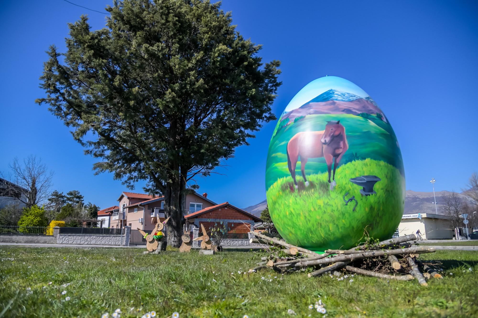 - Ne damo koroni da ukrade Uskrs u Jelenju. Iz kreativnog odjela Turističke zajednice i od samih mještana, uz malo dobre volje za nula kuna uređeno kružno raskrižje sada krase uskrsni simboli. Zahvaljujemo lokalnom poduzetniku koji je dopremio pisanicu, Komunalnom društvu Jelen i Dobrovoljnom vatrogasnom društvu Ivan Zoretić Španac na asistenciji. Inače, drvene zečiće izradila je Jasminka Matrljan, zaposlenica TZO Jelenje, kažu u jelenjskoj Turističkoj zajednici.