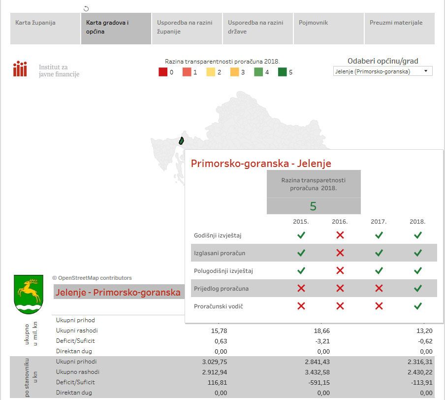 Institut za javne financije predstavio je početkom srpnja rezultate najnovijeg ciklusa istraživanja transparentnosti proračuna lokalnih jedinica svih 576 hrvatskih lokalnih jedinica.